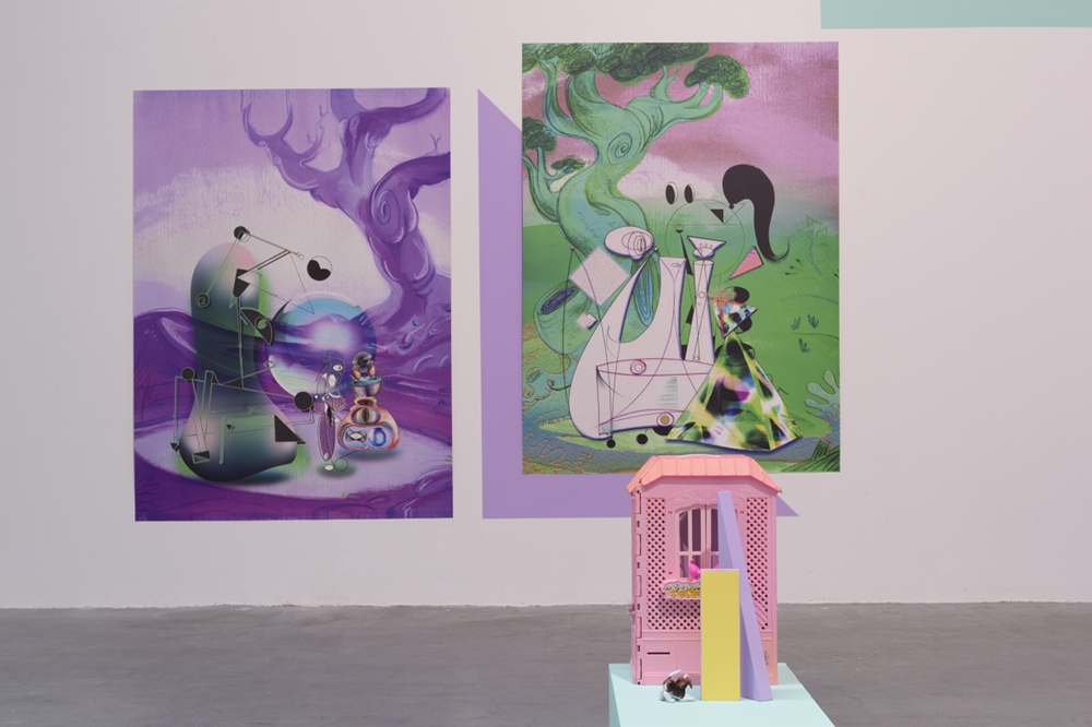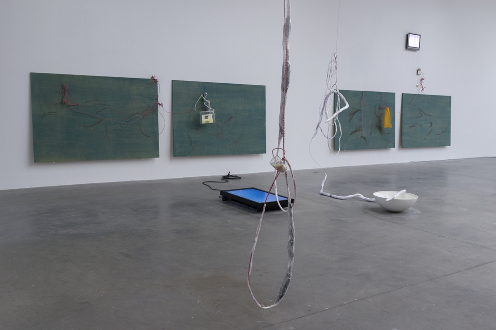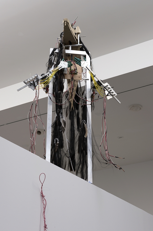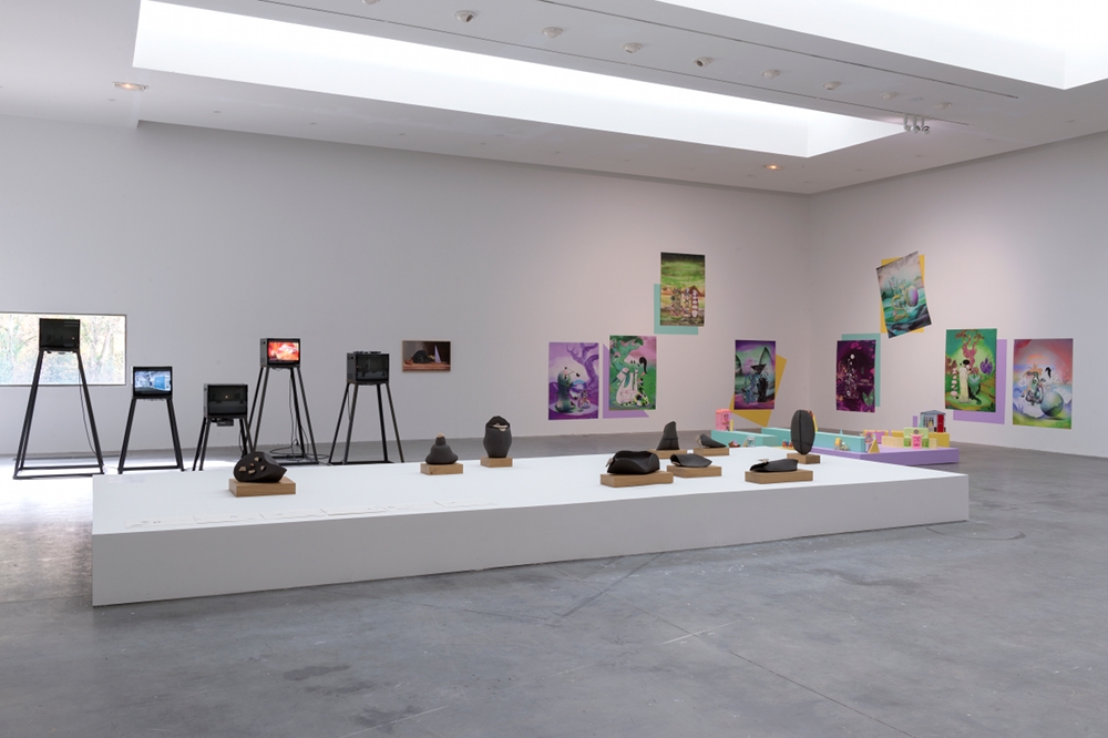 Julien Creuzet uses the shape of the “archipelago” inherited from Edouard Glissant as a conceptual and aesthetic drive of a practice that tries to restore the poetry of the fragmented identities of a post-colonial world. Ximena Garrido-Lecca (Lima, 1980) explores territories damaged by the history in order to remove architectural or narrative elements that, within the room of a white cube, are converted in several fragile resistances. Adriana Minoliti (Buenos Aires, 1980) uses the space of the painting and sculpture as an imaginary refuge for hybrid creatures, half-animal, half-human like, extending in “cyborg” mode, the modernist taming dream. Fernando Palma Rodriguez (Milpa Alta,1980) builds mechatronic sculptures which evoke the Mexicans cosmogonies from where he is and also the dramatic ecologic situation of his hometown, Milpa Alta, engulfed for decades by the monstrous growth of the City of Mexico. Gala Porras-Kim’s plastic language (Bogota, 1984) gets its inspiration from the universe of Archeology and Linguistics in order to create collections of invented artifacts which challenge mischievously the stablished cultural classifications.