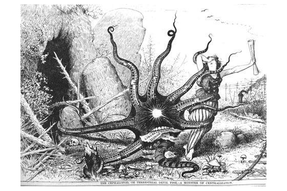 The cephalopod - terrestrial devil fish - a monster of centralization, New York Daily Graphic, March 4, 1873