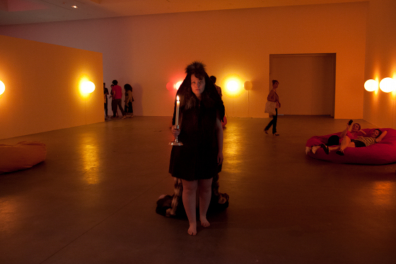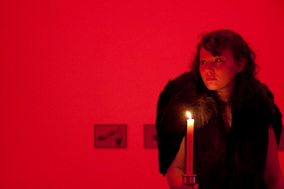 À pas lents, la robe retroussée, Manon erre dans l’espace du Frac, qu’elle éclaire d’une bougie. Il fait pourtant bel et bien jour, il n’est que 19h.