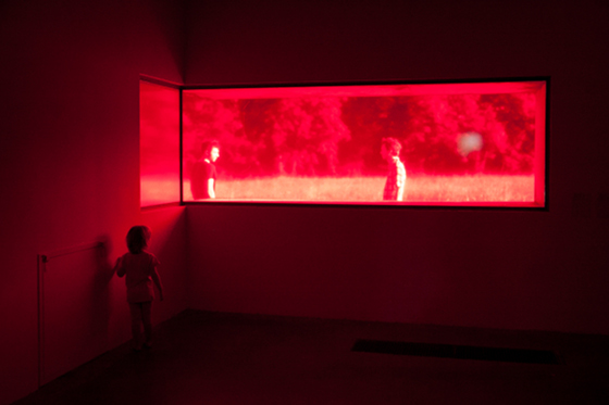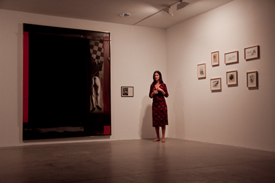 La fille doit aussi être cousine éloignée de La Belle au Bois Dormant : son environnement paraît somnoler, suspendu dans son déroulement. Le moment présent devient éternité. Est-ce bien Manon qui rêve, ou peut-être sommes nous en train de fantasmer cette figure féminine ? De quel côté du miroir nous trouvons-nous, et dans quel sens coule le temps ? La robe finira-t-elle par tomber ? Entre les espaces lisses et traîtres des oeuvres de Monica Bonvicini, joyeusement étreinte par les miroirs brisés de Jim Hodges qui déforment et démultiplient sa lente danse, Manon prend son temps et nous rend le nôtre.