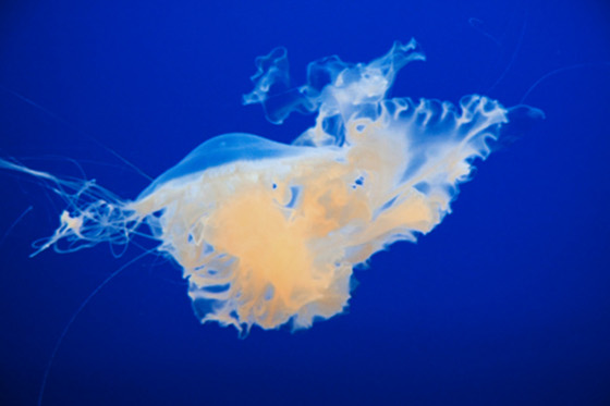 Pour Pulmo Marina, l’artiste filme en plan séquence une méduse à travers la vitre d’un aquarium. Les constants changements de formes de l’animal sont mis en valeur par le contraste entre sa couleur jaune et le bleu de la lumière artificielle de l’aquarium. Le discours énoncé par la voix-off emprunte à des registres variés : documentaires animaliers, brochures zoologiques, interprétations mythologiques et interviews. Après ça, le discours se déplace et s’intéresse aux aspects techniques de l’aquarium dans lequel l’artiste nous plonge : design, mesures, fonctionnement artificiel des courants, dispositifs d’éclairage et de colorisation de l’eau ... Cette déconstruction révèle l’aquarium comme un véritable dispositif de monstration de l’animal, de mise en scène et d’illusion, qui le rapproche finalement du cinéma.