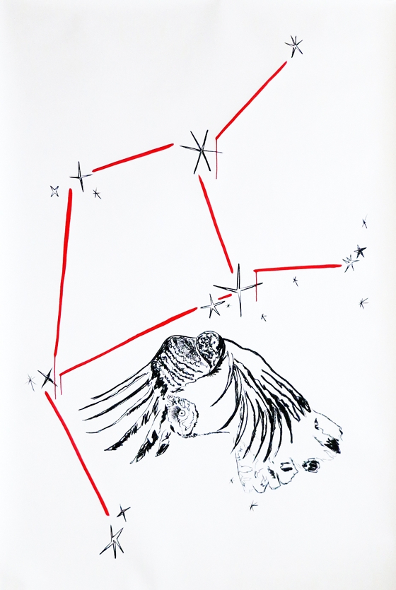 Delphine Gigoux-Martin, combat de la chouette et du Ara, 2013
