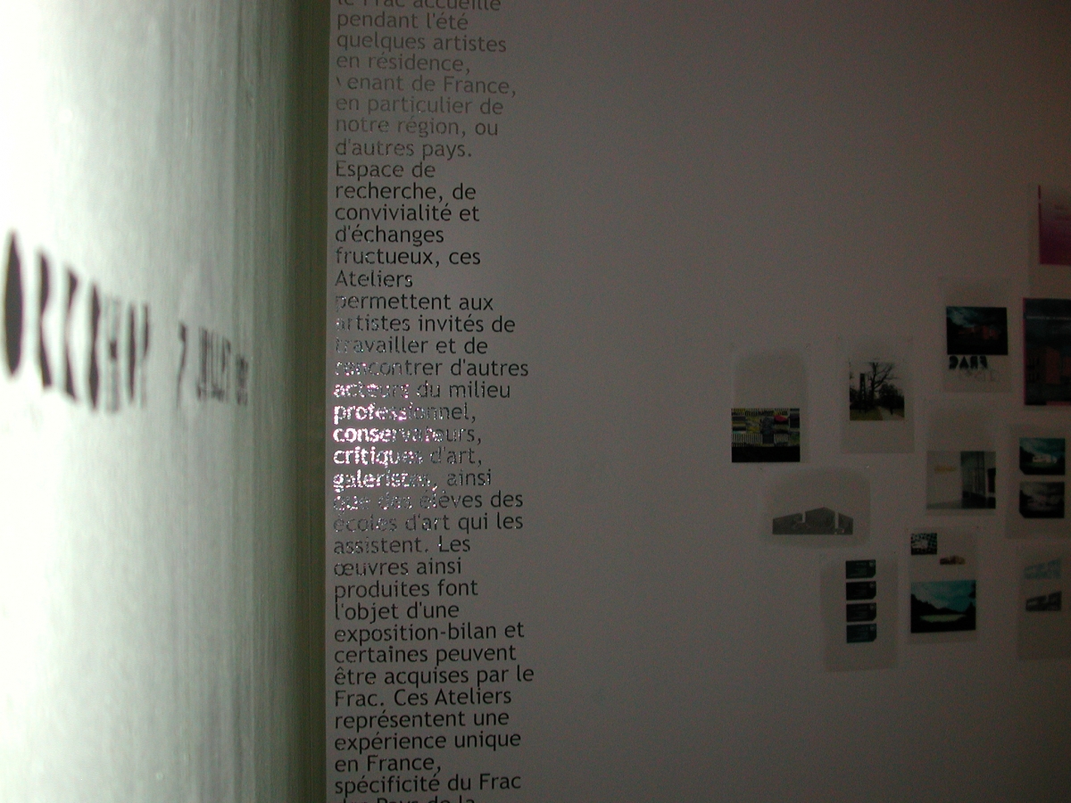 L’exposition retrace l’ensemble des étapes qui ont marqué ce cheminement vers l’identité graphique actuelle. Dans une mise en espace colorée et didactique, le public pourra découvrir les travaux, réalisés ou non, par l’artiste et de cette façon appréhender un pan de l’histoire récente du Frac, ses partenariats, les œuvres et les artistes exposés, etc.