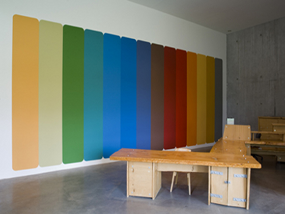 L’œuvre de Dafflon est “raisonnée”, tout à la fois dégagée des carcans idéologiques de la modernité, et des effets spectaculaires de l’Op-Art. Au Frac, l’œuvre “ajustable” que Stéphane Dafflon conçoit pour la collection élabore une stratégie subtile de brouillage des repères physiques et visuels : assumant pleinement sa dimension atmosphérique, elle instaure une partition chromatique qui vient contrecarrer la perception habituelle de l’espace.