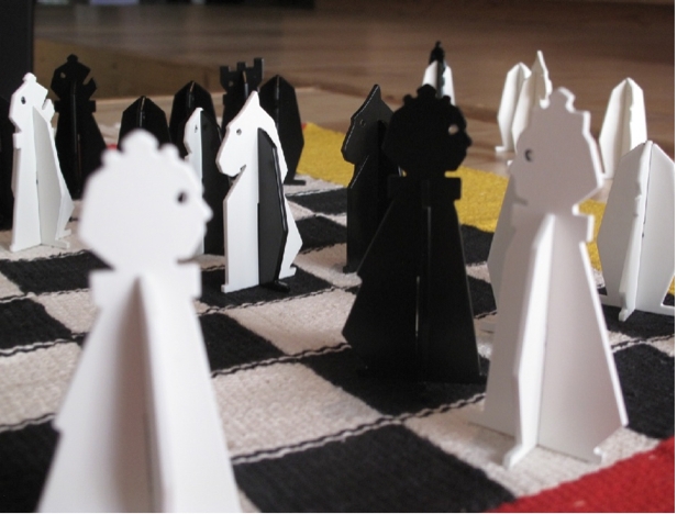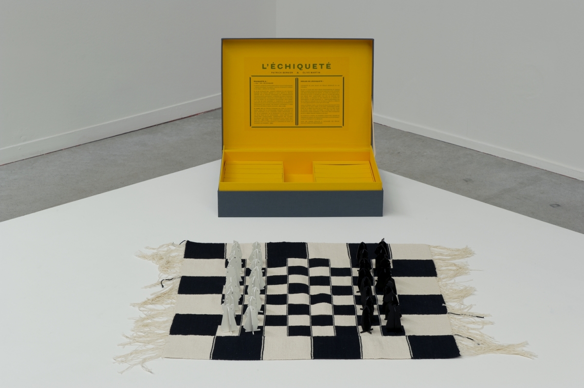 Invitation à jouer à L’Échiqueté et lecture de parties par les artistes Patrick Bernier et Olive Martin. Les artistes ont élaboré une variante du jeu d’échecs, pour interroger un personnage partagé entre deux camps. Les spectateurs sont invités à jouer selon les règles habituelles. À un détail près, au lieu de disparaître, les pièces prises se combinent. Les pions, constitués d’une partie haute et d’une partie basse que l’on peut dissocier, s’hybrident, s’échiquètent, en entités mixtes. Mettant en jeu la dualité noir-blanc.