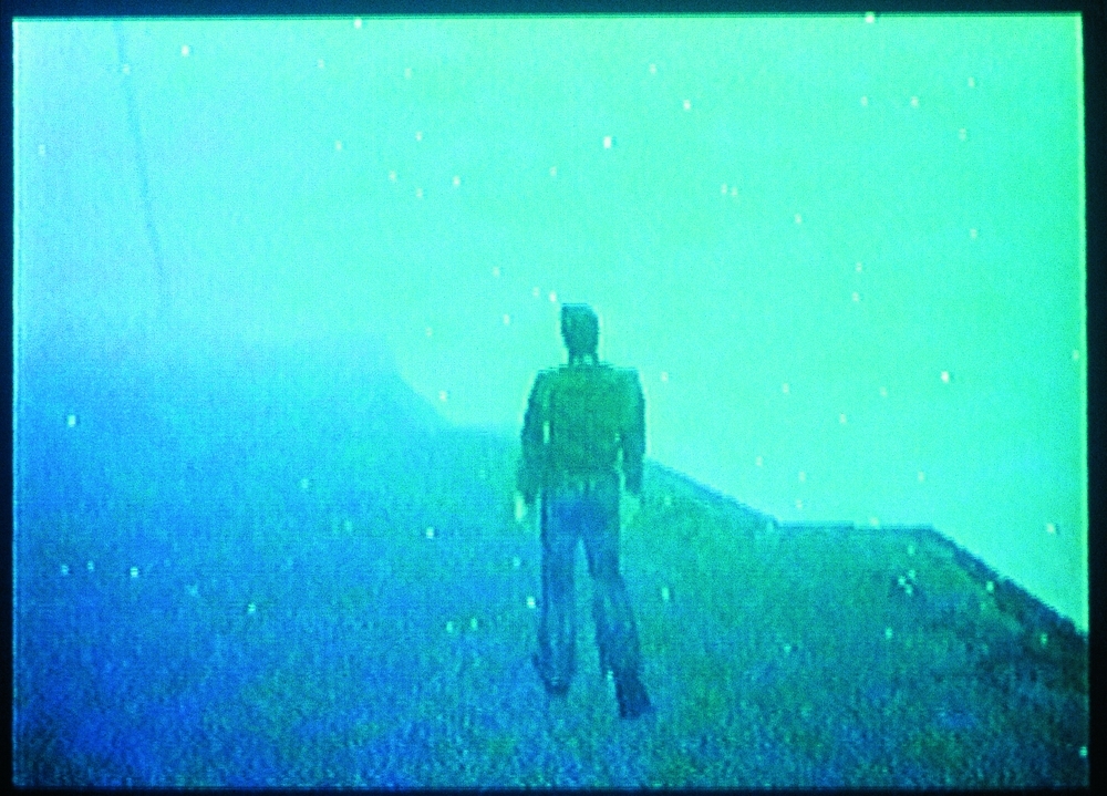 L’œuvre acquise par le Frac a pour titre Promenade (1999) ; on y reconnaît un jeu vidéo au design particulièrement soigné, connu sous le nom de Silent Hill. Un personnage erre sans fin dans une ville entourée d’un paysage étrange. L’œuvre s’impose au spectateur comme une sorte de ready-made : re-construit hors de l’espace et du temps, le jeu vidéo, qui a perdu son interactivité, évacue toute humanité.