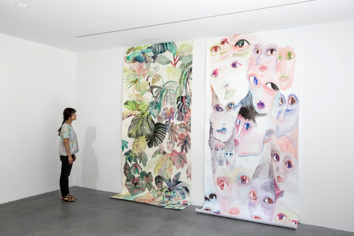 "playtime 1", 2018 et "playtime 2", 2018, 150 x 325 cm chaque, aquarelle sur papier