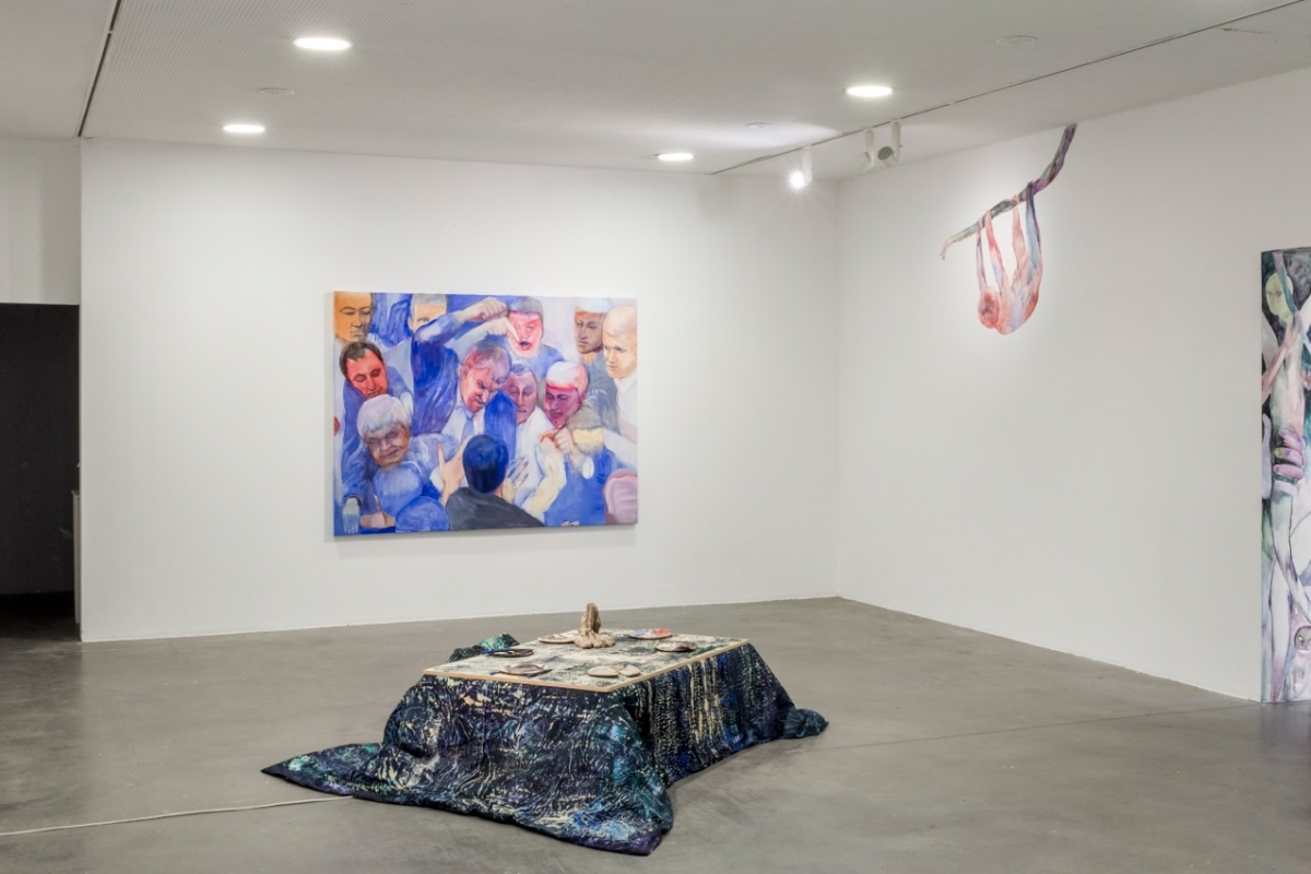 Bien qu’elle expérimente différents médiums, Makiko Furuichi semble toujours rattrapée par la peinture, principalement à l’huile sur toile et à l’aquarelle sur papier, parfois en wall painting, sur céramique, vidéo ou support textile. Invitée pour une exposition monographique au Frac des Pays de la Loire, l’artiste choisit de déployer toutes les facettes de cette pratique foisonnante, et propose même une première installation où le dessin vient requalifier la table traditionnelle qui occupe le centre de l’espace de vie au Japon : le Kotatsu.