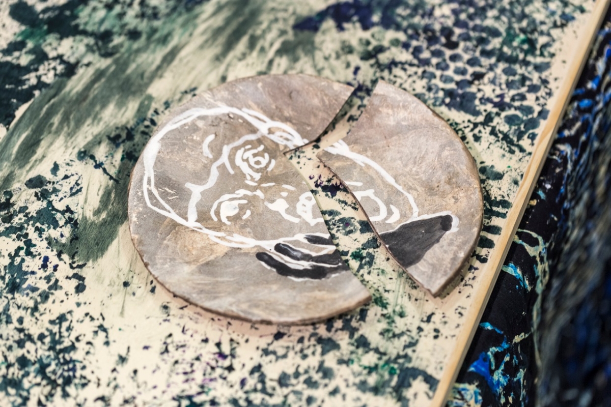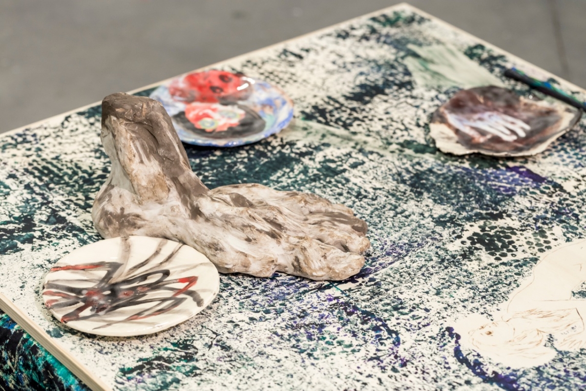 "morceau de frustration", 2018, (détail), 250 x 200 x 120cm, toile, céramique, carton, pâte fimo