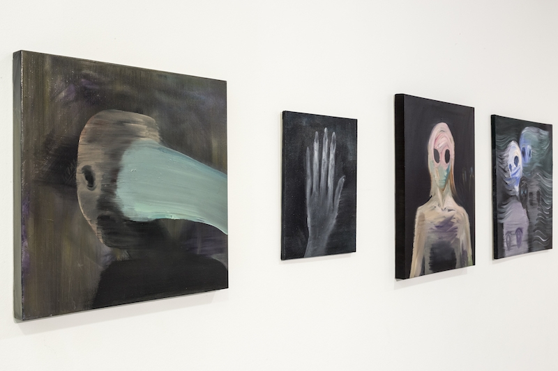 Miroir de cette scène mentale, l’œuvre fait défiler une foule d’êtres onctueux et trempés dont le visage divague, dont le corps se liquéfie, tenté par l’abstraction, le flou et l’échappée. Comme dans les rêves et les contes, ces visions éclosent sans prévenir, à la fois empathiques et cruelles, douces et terribles, traversées par la présence animale et végétale, mais consacrées en majeure partie au portrait d’êtres presque humains, porteurs d’émotions troubles.