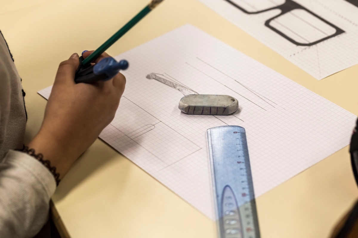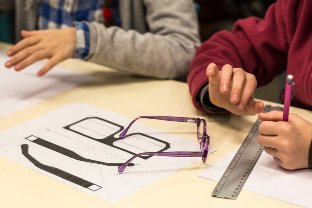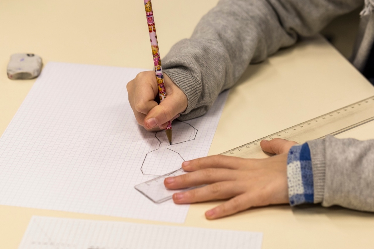 À partir d'éléments familiers comme la feuille à petits carreaux, le feutre et des motifs issus du quotidien, les élèves découvrent comment les formes investissent le support et s'en échappent. Ils peuvent aborder la transformation du dessin au volume, du petit au grand format, du dessin individuel à une réalisation collective. Ils sont également sensibilisés aux questions de l'exposition, donc de la présentation de leurs réalisations et du rapport au langage et à la communication.