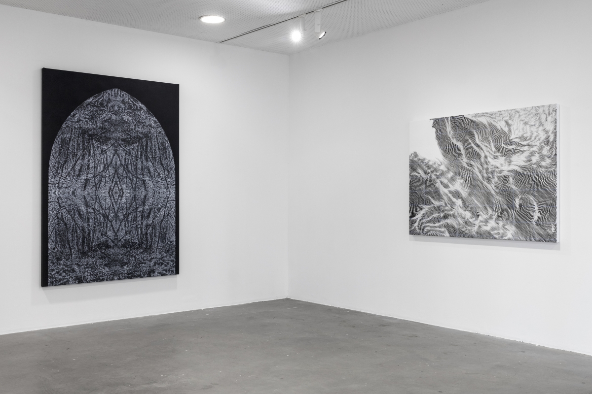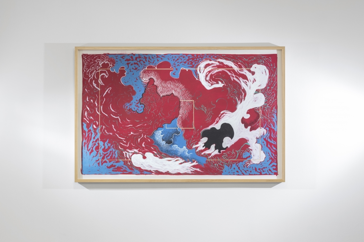 Nous ne sommes plus dans un espace continu car ici autre chose trouve son équilibre, une certaine union des opposés, l’envers de quelque chose semble se matérialiser. Par la pratique du dessin et de la peinture, Arthur Lambert explore un monde de champs de force et de particules. Chacune de ses œuvres est une entité colorée tant dynamique qu’optique. Tout y devient granulaire, prenant parfois la forme de l’atome ou de la molécule. Il procède, en premier lieu, à de nombreuses recherches graphiques, puis il les compose et recompose en faisant des esquisses sur écran ou sur papier. À partir de ce travail préparatoire, il façonne à la main chaque dessin et peinture avec une concentration extrême et une grande maîtrise technique. Car dessiner, selon lui, c’est faire l’expérience d’un monde, regarder une parcelle de cet univers commun et le traverser, l’éprouver. Par l’usage de techniques ancestrales comme celle de l’enluminure, Arthur Lambert attrape et prélève des formes hors du temps en captant l’impact formel et la dimension magique des arts anciens. Il crée une architecture sensible et structurée qui se réfère souvent au nombre d’or ou aux langages cryptés comme le langage des oiseaux.