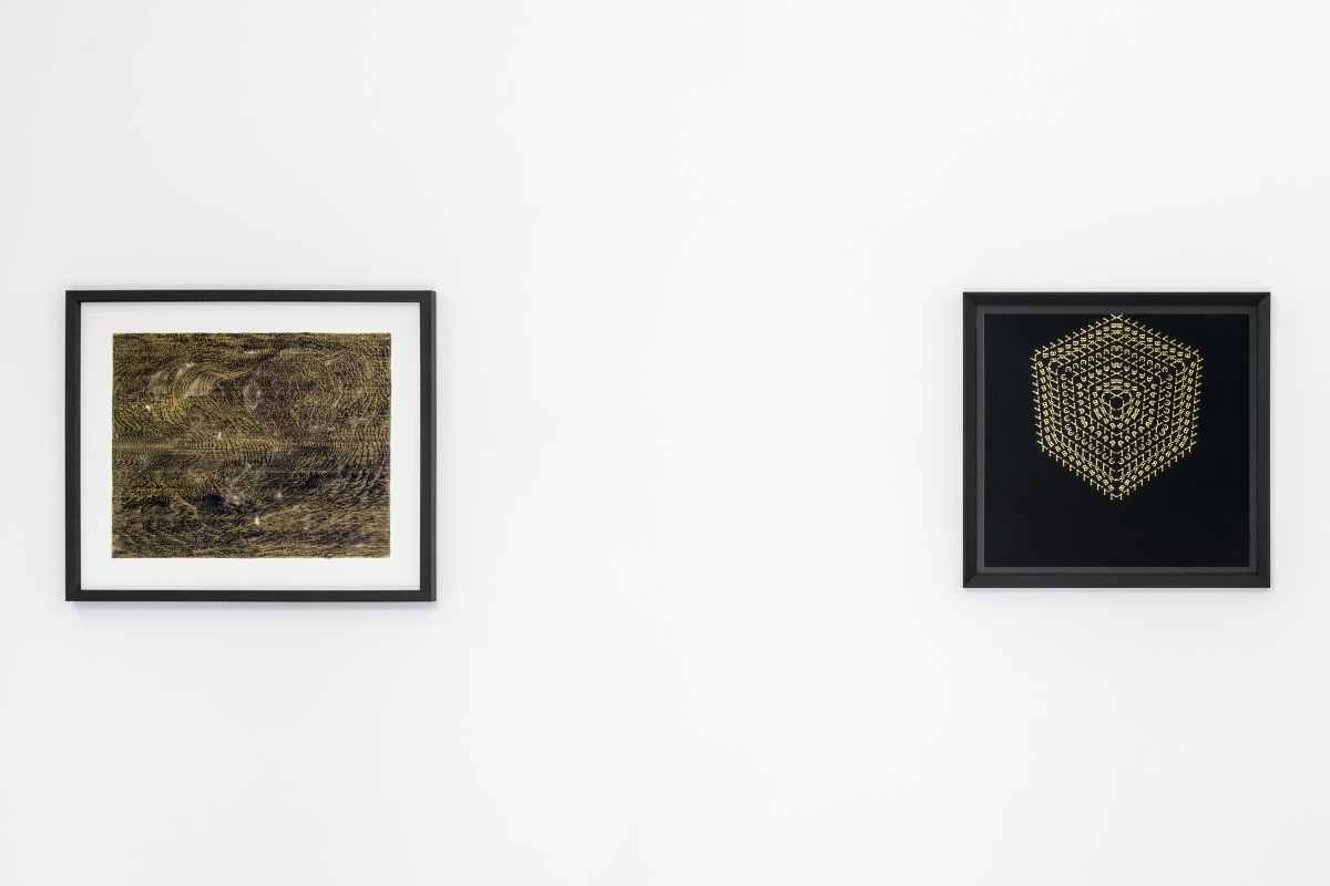 Passerelles entre les techniques et les mondes, entre l’esprit et la matière, ses œuvres s’appuient sur les cultures sacrées, tant occidentales qu’orientales. Avec l’usage de l’or, symbole de la lumière métaphysique, c’est cette intensité vibratoire vers l’abstraction et une géométrie de l’invisible qu’il recherche. Ses œuvres convoquent des symboliques très fortes à partir de ces formes primordiales : elles se télescopent pour jouer avec notre appréhension optique voire haptique. Les motifs et textures mis en exergue par Arthur Lambert deviennent des systèmes solaires et cosmiques où la saturation des lignes s’allie à une dimension spirituelle. Il incorpore également dans ses œuvres un symbolisme sorti tout droit de l’intuition géométrique et mathématique. Alors que ces « lignes de force » se connectent à une même énergie cosmique et primordiale, l’alchimie, en trame de fond de ses œuvres, exerce aussi son principe de transformation du réel.