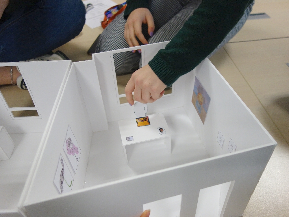 Préparation de l'exposition par les élèves à l'aide d'une maquette de la salle d'exposition