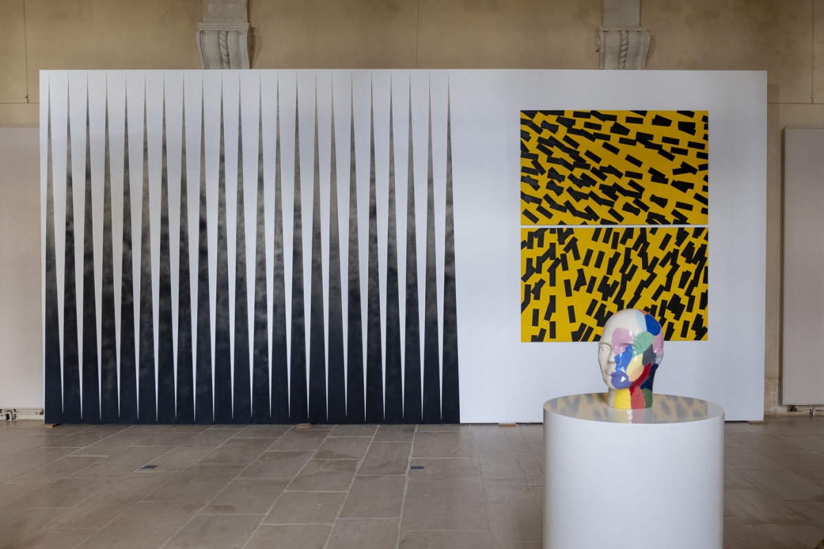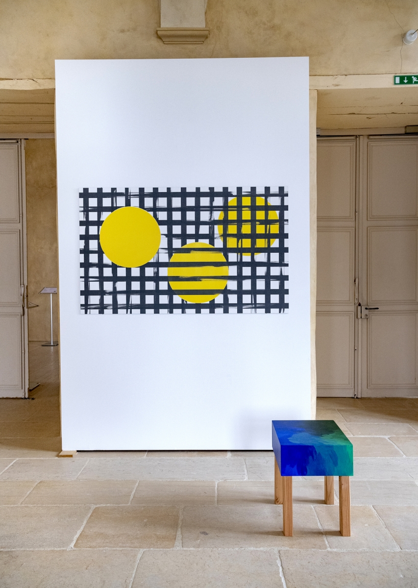 En réunissant les œuvres d'Eva Taulois et Irma Kalt, l'exposition Le hasard matériel fait advenir peinture, ligne, forme et couleur dans l'espace, re-dessinant ainsi les volumes de l'architecture majestueuse de l'abbaye mauriste de Saint-Florent-le-Vieil.