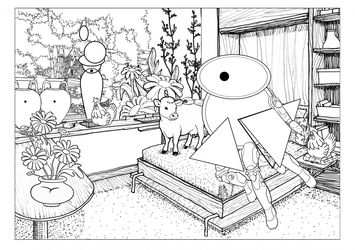 Laissez vous surprendre par les formes géométriques, leurs juxtapositions et les détails. Selon votre humeur ou votre sensibilité du moment, leurs représentations peuvent varier. Par la couleur, donnez un nouveau sens aux motifs dessinés par l’artiste et poursuivez sa quête utopique d’un monde coloré, égalitaire et dépourvu des représentations traditionnelles. Les dessins combinent des formes géométriques, des imageries de notre enfance, des formes géométriques, des animaux de la ferme ou encore des références à l’histoire de l’art… Devinez-les !