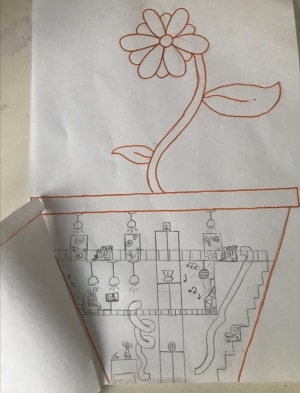 Sur une feuille, dessinez en grand cet élément végétal, animal, minéral. Découpez le en ajoutant sur le côté de votre choix une languette assez grande pour pouvoir la coller. Ensuite, reportez son contour sur une nouvelle feuille. Dans cette forme reportée, imaginez et dessinez l’intérieur de votre maison-refuge : que contient-elle ? Sur quoi dormez-vous ? Dans cet espace confiné, comment circulez-vous ? Y a-t-il des toboggans, des mobiliers à poulie, des passages secrets ? Une piscine ? Une boule à facettes ? Une fois votre intérieur terminé, refermez votre maison et coller la languette puis un tour de main dévoilez votre cocon, votre abris secret !